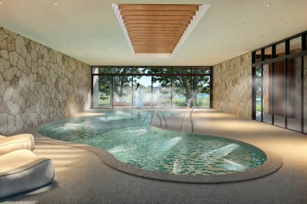 Único com SPA hidroterápico com sauna seca e a vapor e espaços para meditação e tai chi chuan, proporcionando relaxamento e renovação.